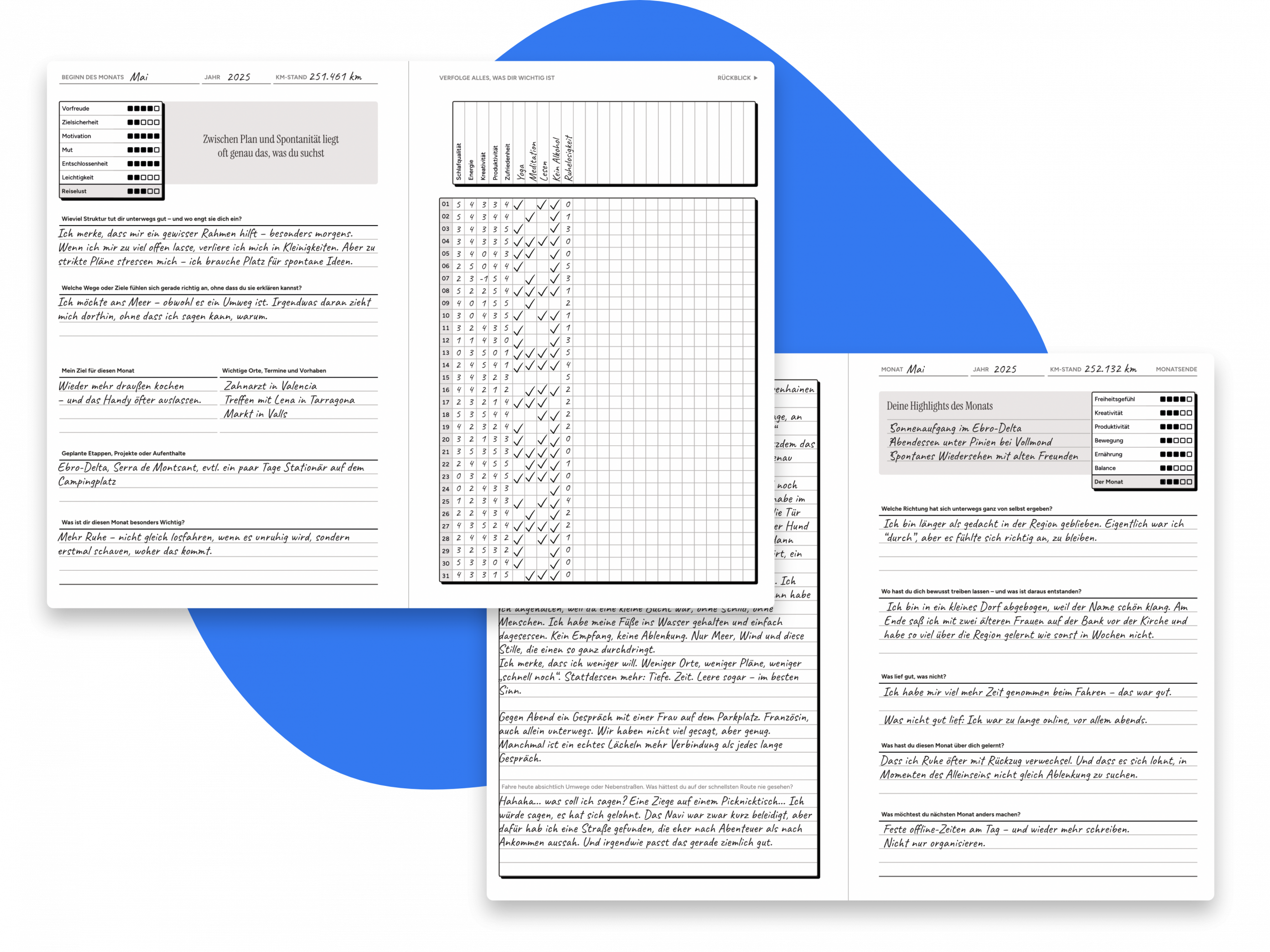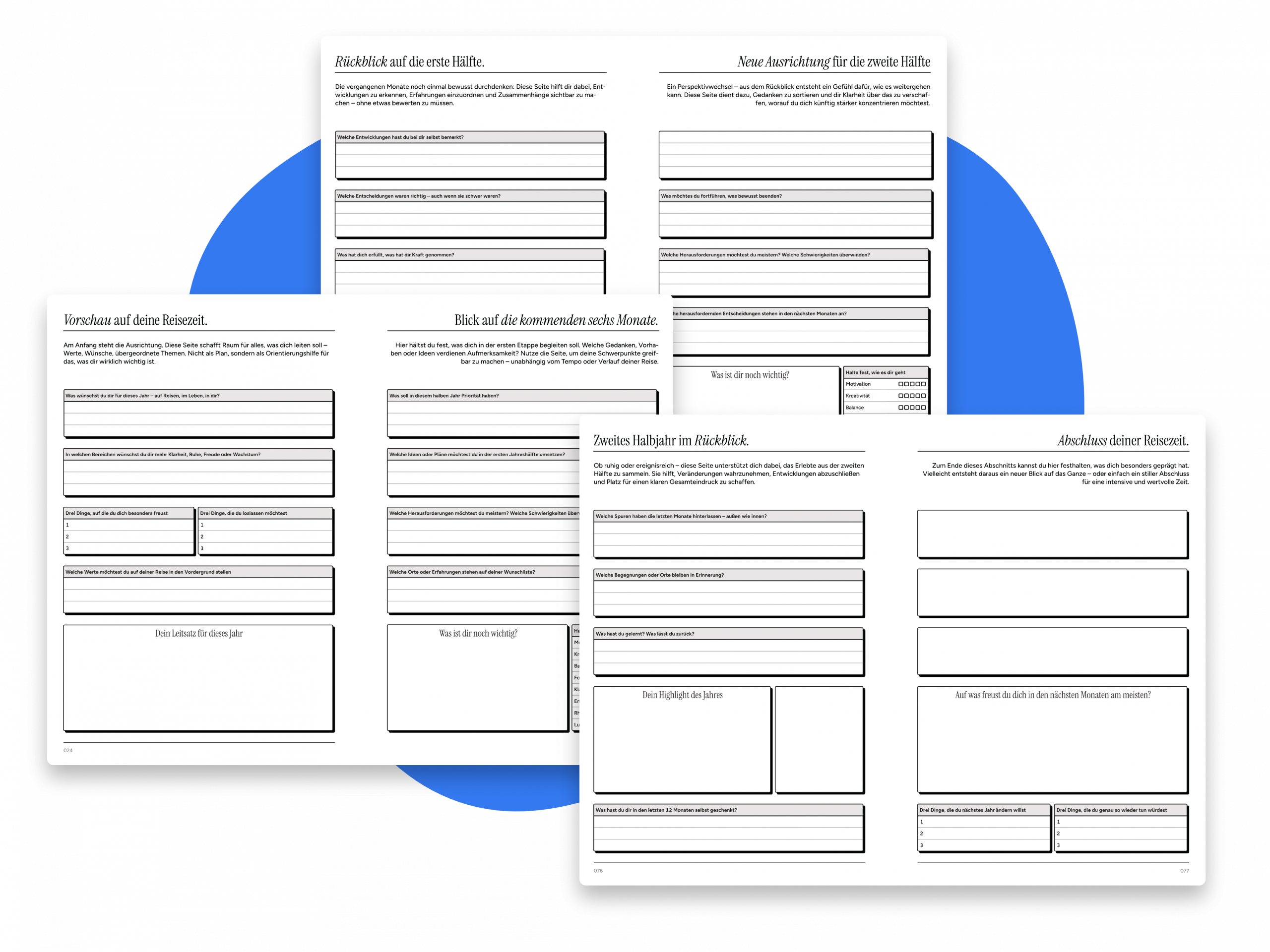 Die Jahresvorschau, der Halbjahres-Check-In und der Rückblick helfen dir, dein Jahr bewusster zu gesalten — mit regelmäßigem Innehalten und Raum für das, was wirklich zählt.